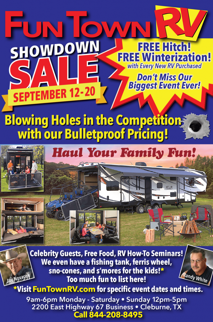 IT’S OUR BIGGEST SALE OF THE YEAR. Beginning September 12 – 20 we will be hosting our Fun Town RV Showdown Sale. This HUGE sale event is open to everyone and offers good family fun Monday through Saturday 9am – 6pm and Sunday noon to 5pm.