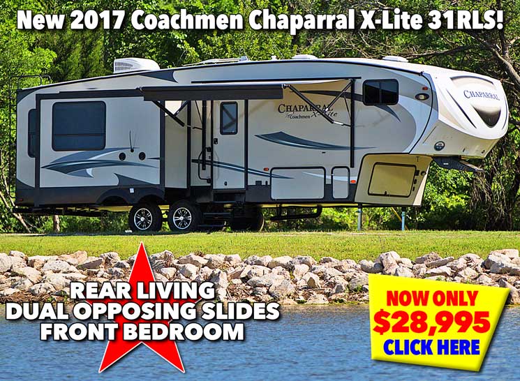 For a limited time, the 2017 Coachmen Chaparral X-Lite 31RLS Fifth Wheel can be yours for only $28,995!