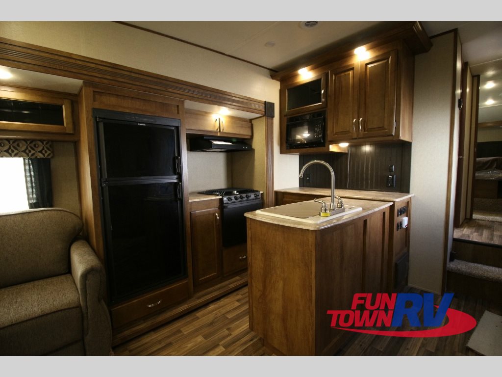 The Chaparral X-Lite 31RLS features a rear living layout, dual opposing slides in the living area, plenty of cozy sitting space, a well equipped kitchen with L-shaped counter and spacious front bedroom.
