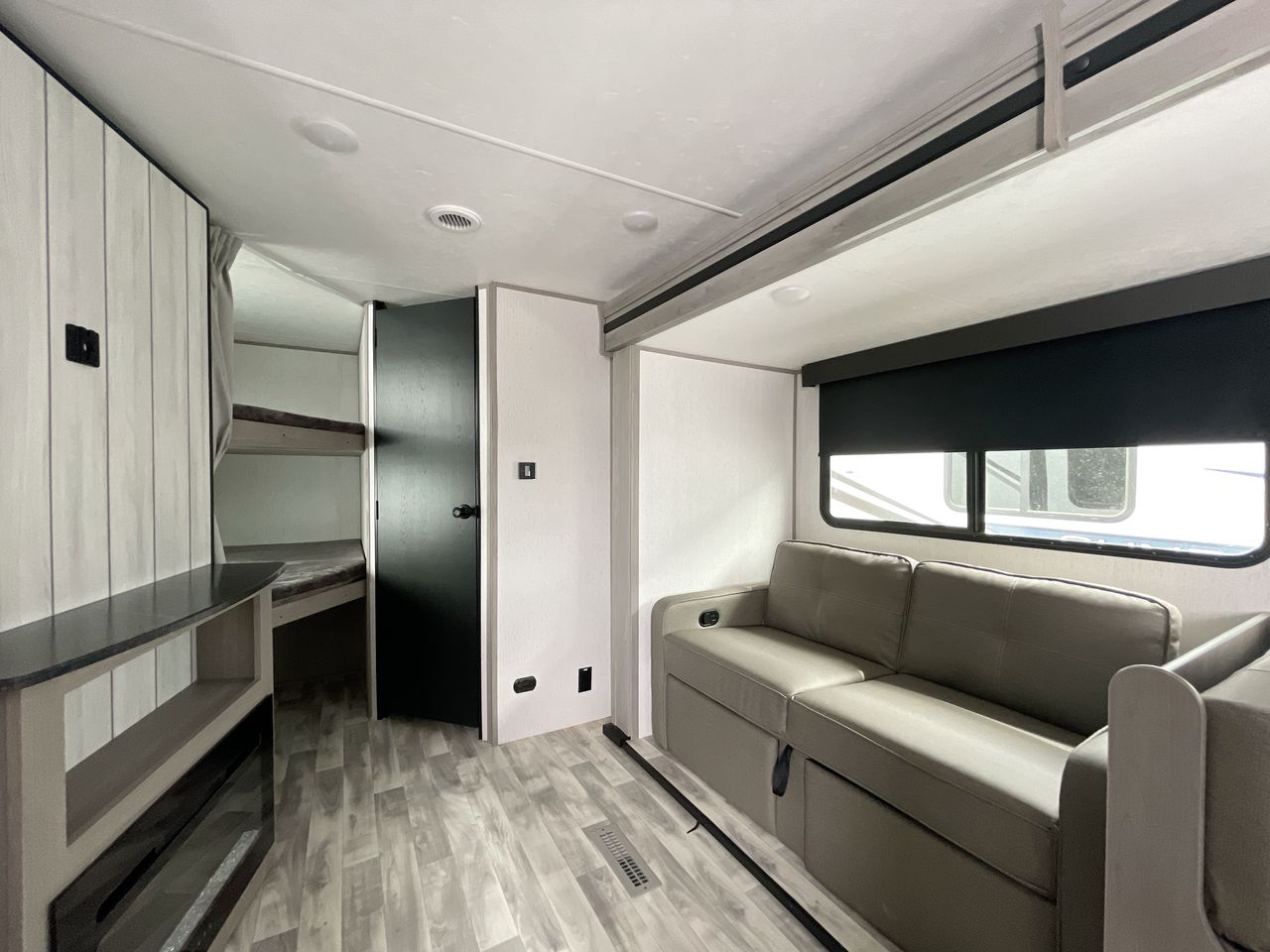Step inside, and you’ll find even more reasons to make this Dutchmen Kodiak SE travel trailer your next family RV. There is sleeping for up to eight with a set of double-sized bunks and a private master bedroom. Additionally, you’ll love that the central control station gives you the power to adjust the lighting, awning, and more from one spot. The kitchen features a hidden pantry behind the entertainment center, so you’ll have plenty of space for everyone’s favorite snacks and more!