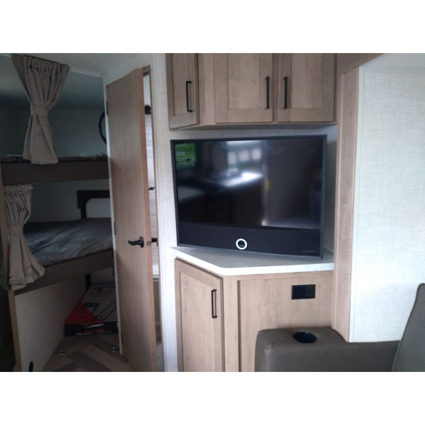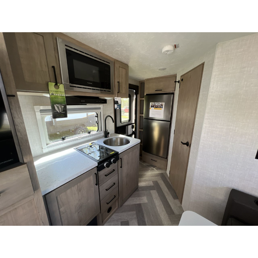 Enjoy taking your whole family to the campground in this Ember Overland Series 221MDB travel trailer that offers a set of double-sized bunks in the rear of the RV. These bunks are specially designed to be able to comfortably sleep up to two adults each. You’ll find that the slide-out in the living room offers a Jackknife sofa for additional sleeping space.