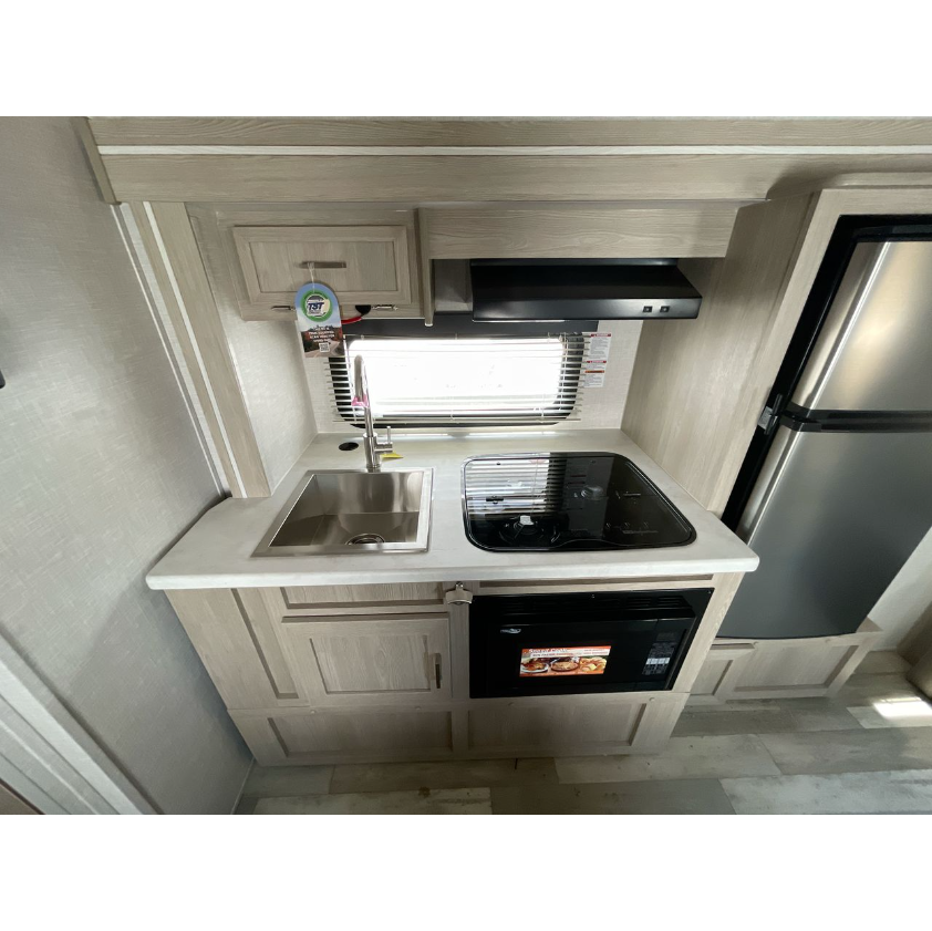 Get more out of your space with the Forest River Rockwood Geo Pro G19FDS travel trailer that offers a Murphy bed design with a 72″ sofa. This bed and sofa combination gives you ample space for entertaining and a cozy place to rest at the end of the day. You’ll love that the outdoor features include a 14′ awning, a pull-out griddle, and solid step entry to make it easy to get in and out of your space.