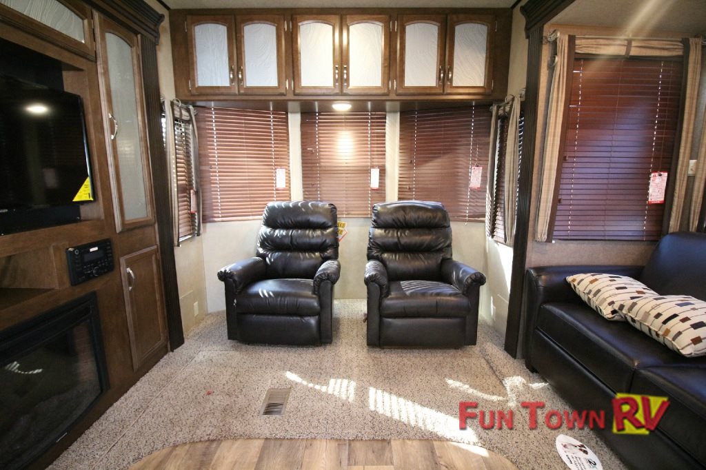 With two full sized bathrooms and one featuring a private entrance to the outside, your family will have plenty of space to take care of all their needs without getting in one another’s way. Plus, the seven to eight foot cathedral ceilings will give this RV more height to make the interior feel even more spacious. Another area where the Forest River Wildwood destination trailer adds comfort is in the furniture that is made entirely by one of the best companies on the market: La-Z-Boy. This furniture is built to last and bring the comfort of home anywhere you travel.