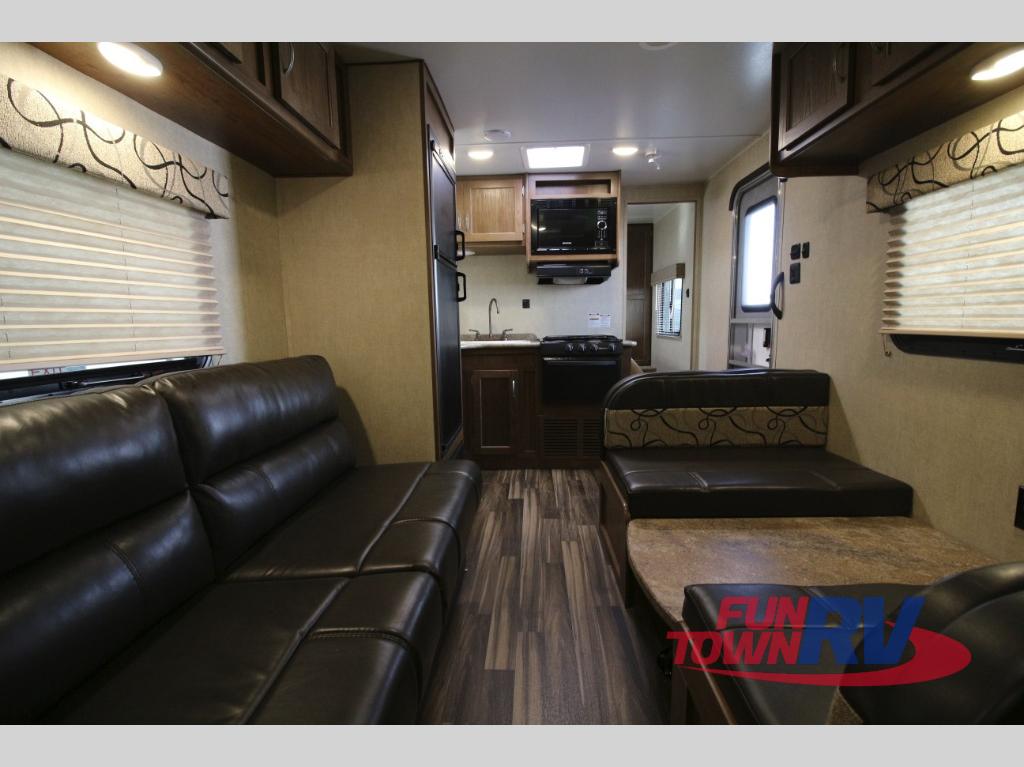 In the Kingsport 20 QBG SE you will find a Grand View U-shaped Dinette which can be folded down to provide additional sleeping space. The kitchen features a three burner range, double sink, refrigerator, and storage pantry for all of your canned and dry goods.