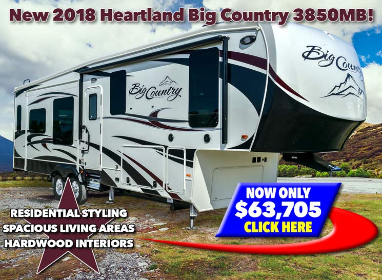 To find a Heartland Big Country On Sale at an amazing deal, Contact Us at Fun Town RV or visit our large RV Sales Lot and join us in a guided tour of our entire fifth wheel inventory. We’re here to help you make your travel dreams come true!