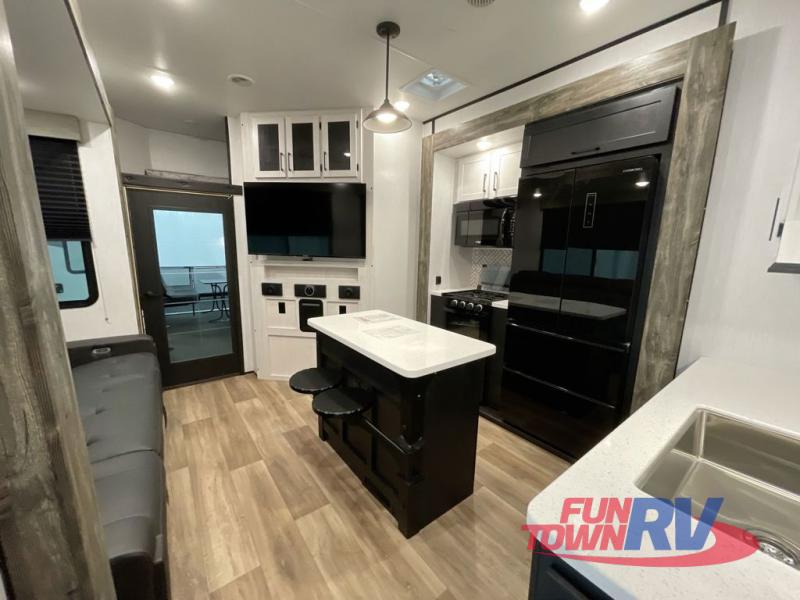 Step inside the Gravity’s interior to discover a realm of unmatched luxury. The harmonious combination of plush residential furniture, state-of-the-art kitchens, and divine sleeping quarters transform this toy hauler into a sumptuous retreat. After intense outdoor activities, the Gravity is your serene sanctuary offering modern amenities wrapped in elegance.