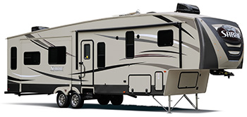 You can have all the amenities of your kitchen at home while still enjoying the great outdoors. But, the kitchen is not where it stops for the Sabre; like all Palomino products, the Sabre is outfitted for versatility. Ceiling fan? Check. Solid hardwood cabinets? Check. Shower skydome? Check. Deluxe luxury queen-sized mattress? Check. Everything that you need to be comfortable while “roughing it” come sealed up in the tidy package that is the Palomino Sabre fifth wheel.