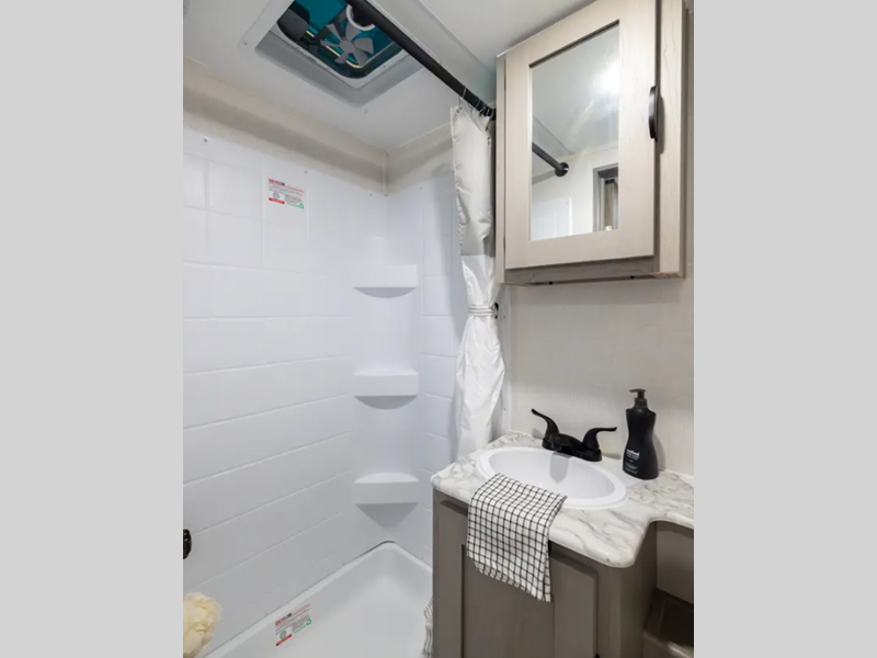 Sleeps 4 Length 26 ft 10 in Ext Width 8 ft Hitch Weight 700 lbs GVWR 7700 lbs Dry Weight 4724 lbs Cargo Capacity 2976 lbs Fresh Water Capacity 40 gals Grey Water Capacity 32 gals Black Water Capacity 32 gals Furnace BTU 20000 btu Available Beds Queen Refrigerator Type GE 12V Refrigerator Size 10 cu ft Cooktop Burners 3 Shower Size 24 x 36 Number of Awnings 1 Water Heater Type Tankless on demand AC BTU 13500 btu Awning Info 18' Power Awning w/ LED Strip and Adjustable Legs Axle Count 2 Shower Type Standard Similar Floorplans