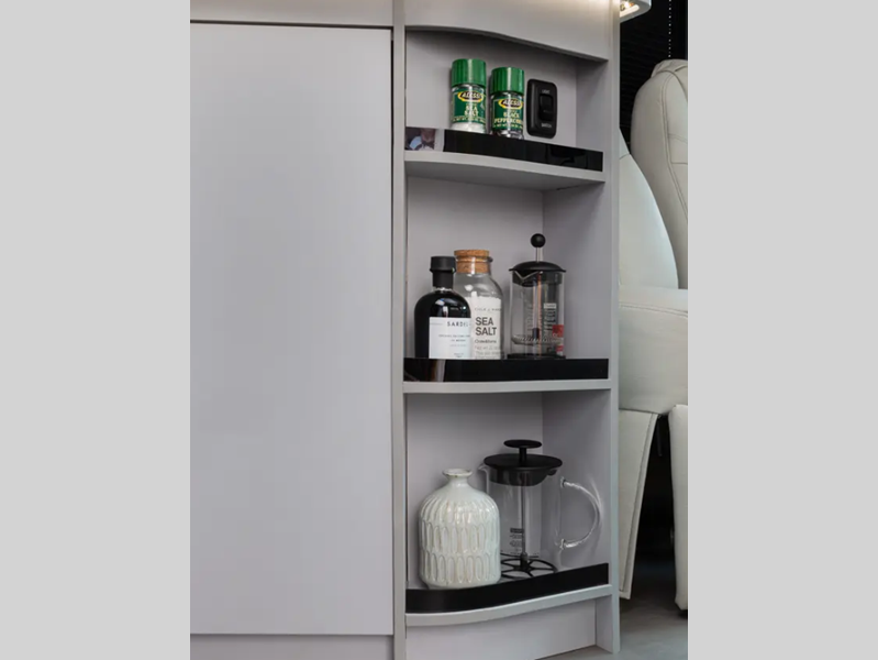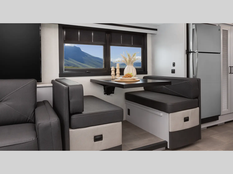 You will love the interior with its stainless steel appliances, modern decor, and generous cabinet space for all your belongings. There are also stylish square windows with day/night shades that will provide better views of your landscapes and an Easy Clean cockpit floor. Automatic leveling jacks also come standard on most models, along with a power patio awning, radius trunk doors, and an 8,000 lb. towing hitch for your hauling needs.