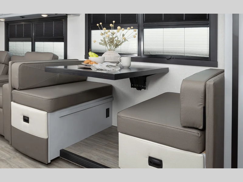Sleeps 7 Slides 2 Length 36 ft 10 in Ext Width 8 ft 6 in Ext Height 12 ft 5 in Interior Color Champagne, Mocha Exterior Color Partial Paint Option. Full Body Paint; Glaucous, Graphite, Scarlet. Night Moves (Limited) Hitch Weight 8000 lbs GVWR 22000 lbs Fresh Water Capacity 70 gals Grey Water Capacity 90 gals Black Water Capacity 90 gals Tire Size 22.5" Furnace BTU 30000 btu Generator 5.5kw Gas Fuel Type Gasoline Engine 7.3L V8 Chassis Ford F53 Horsepower 350 hp Fuel Capacity 80 gals Wheelbase 242 in Number Of Bunks 3 Available Beds King Torque 468 ft-lb Refrigerator Type Stainless Steel Residential Cooktop Burners 3 Shower Size 48" x 35" Number of Awnings 1 Axle Weight Front 8000 lbs Axle Weight Rear 15000 lbs LP Tank Capacity 84 lbs Water Heater Type On Demand TV Info LR 40" Smart TV, BR 32" LED TV, Ext LED TV Awning Info 17' Power Washer/Dryer Available Yes Gross Combined Weight 26000 lbs Shower Type Standard Electrical Service 50 amp Similar Floorplans
