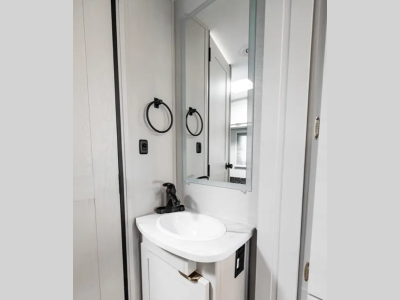 Some of the interior features that you'll find on the Prism Select are the two-tone interior cabinetry, thermofoil countertops, pull down window shades, and many more comforts. The Mercedes-Benz safety features are also going to catch your eye, including the lane assist, the adaptive cruise control, and the MBUX multimedia system with navigation to help get you where you want to go.