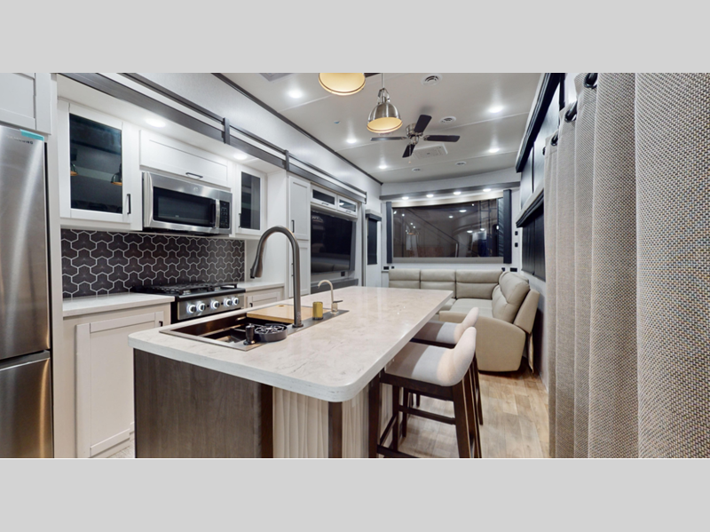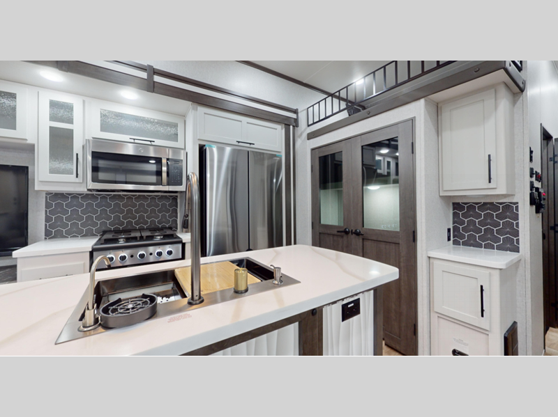 CrossRoads RV Hampton destination trailer 390PVL highlights: Two Lofts Kitchen ... more about Hampton 390PVL