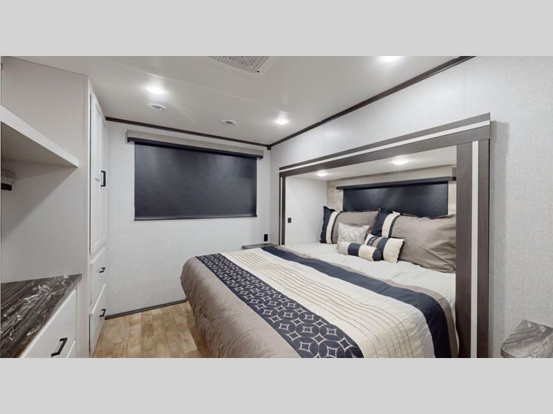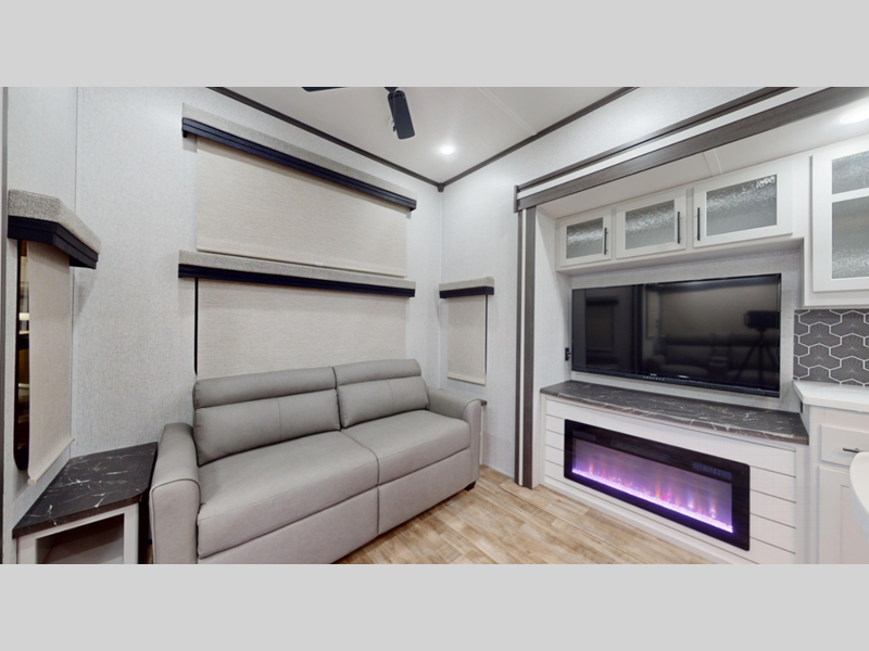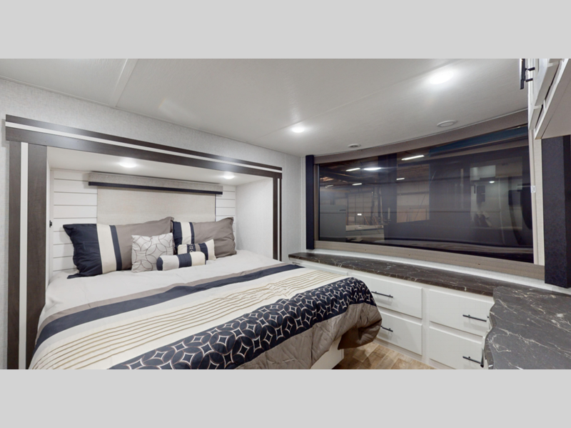 With 8-foot floor to ceiling heights, residential style appliances, and raised panel cabinetry, you can see how they will feel like home. There is an abundance of storage for you to bring along all of your essentials, create the perfect outdoor oasis with the patio awning, and rinse any unwanted dirt off with the outside faucet before heading inside. Each is designed with an enclosed underbelly, severe weather welded mounts, a fiberglass roof and floor insulation with radiant tech foil, plus rain gutters along the entire roof line to keep water away from your unit.