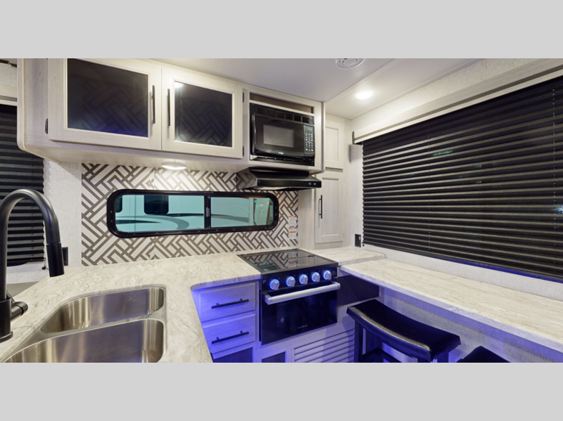 You will feel right at home with cozy seating and sleeping spaces, full bath and kitchen amenities, and storage space for all your belongings. A few other key features that will make your trips easier include the solar and backup camera prep, WiFi prep, and the friction-hinge door.