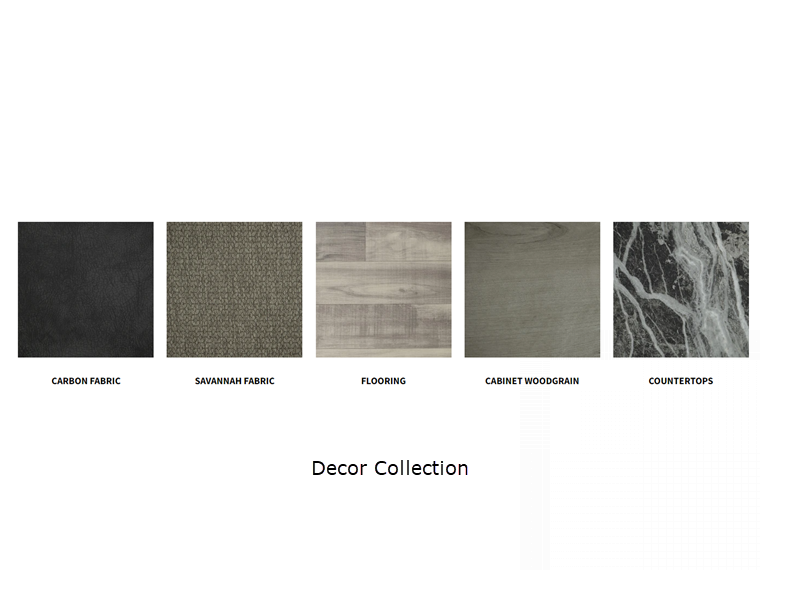 Sleeps 3 Slides 2 Length 33 ft 11 in Ext Height 11 ft 1 in Int Height 6 ft 8 in Interior Color Carbon, Savannah Hitch Weight 845 lbs Dry Weight 7040 lbs Cargo Capacity 2560 lbs Fresh Water Capacity 44 gals Grey Water Capacity 78 gals Black Water Capacity 28 gals Tire Size 15" Available Beds King Refrigerator Type 12 Volt Refrigerator Size 10 cu ft Cooktop Burners 3 Number of Awnings 1 LP Tank Capacity 20 lbs Water Heater Type On Demand Tankless TV Info LR LED Flat Screen TV Awning Info Adjustable Power w/LED Lights Axle Count 2 Number of LP Tanks 2 Shower Type Standard Similar Floorplans