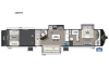 Sleeps 8 Slides 3 Length 42 ft 2 in Ext Width 8 ft 6 in Ext Height 13 ft 5 in Hitch Weight 3300 lbs GVWR 21500 lbs Dry Weight 1654 lbs Cargo Capacity 4956 lbs Fresh Water Capacity 150 gals Grey Water Capacity 93 gals Black Water Capacity 93 gals Tire Size 17.5" Furnace BTU 40000 btu Generator 5500W NPS Gas Fuel Capacity 60 gals Number Of Bunks 1 Available Beds King Refrigerator Type 12V French Door w/Double Drawer Freezer Refrigerator Size 16 cu ft Convection Cooking Yes Cooktop Burners 4 Shower Size 30" x 42" Number of Awnings 3 Axle Weight 7000 lbs LP Tank Capacity 30 lbs Water Heater Capacity 60000 gal Water Heater Type On Demand Tankless AC BTU 45000 btu TV Info LR 50" LED Smart TV, BR TV Garage LED Smart TV Awning Info 9', 10, and 16' Adjustable Power w/Dimmable LED Lights on Camp Side Axle Count 2 Washer/Dryer Available Yes Number of LP Tanks 2 Shower Type Standard Similar Floorplans