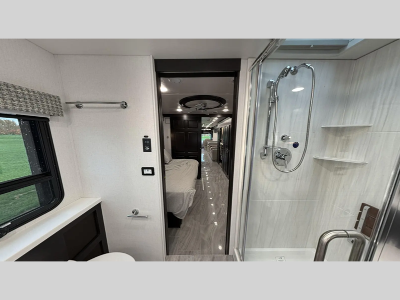 Forest River Berkshire XLT Class A diesel motorhome 45G highlights: Bath and a ... more about Berkshire XLT 45G