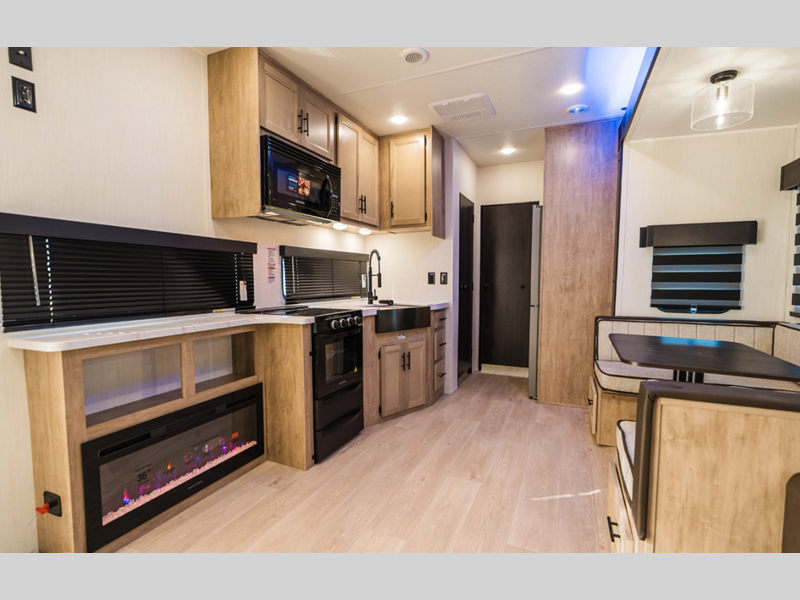 You will always find a comfortable place to relax with friends and family, cook with the full kitchen amenities, and clean up daily in the bathroom. There are also cozy sleeping spaces, plenty of storage options, and durable construction materials so you can enjoy your trailer for years to come!