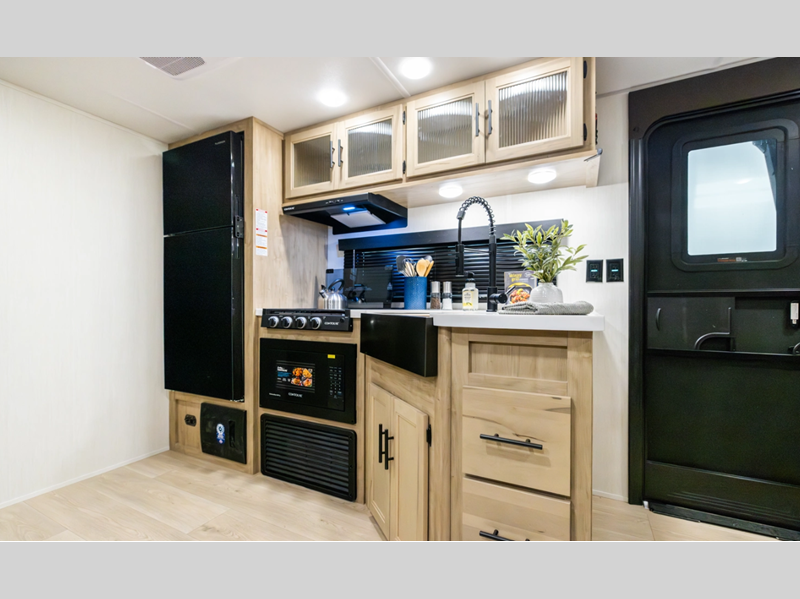 The Black Label differs from the standard Wolf Den, in that there are high gloss gel coat exterior sided walls, frameless windows, and thermo-foil arctic insulation. You'll also enjoy solid surface countertops, upgraded reading lights, and LED interior lighting! Each model features comfortable seating and sleeping spaces, full bath and kitchen amenities to make life at the campground easier than ever, plus plenty of storage space for personal belongings, camp gear and more!