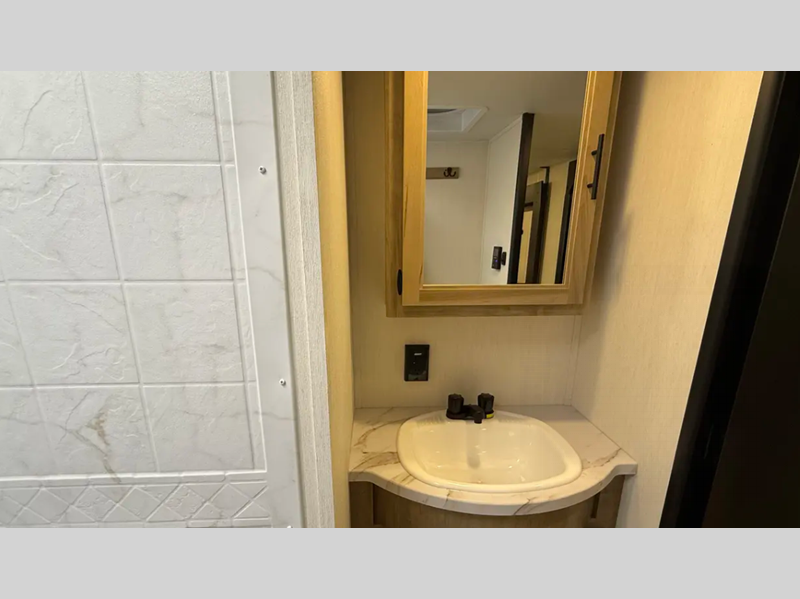 Sleeps 4 Slides 2 Length 33 ft 7 in Ext Width 8 ft Ext Height 11 ft 1 in Hitch Weight 1029 lbs GVWR 9995 lbs Dry Weight 7341 lbs Cargo Capacity 2654 lbs Fresh Water Capacity 52 gals Grey Water Capacity 38 gals Black Water Capacity 38 gals Available Beds RV King Cooktop Burners 3 Number of Awnings 1 Awning Info 21' Axle Count 2 Shower Type Neo-Angled Similar Floorplans