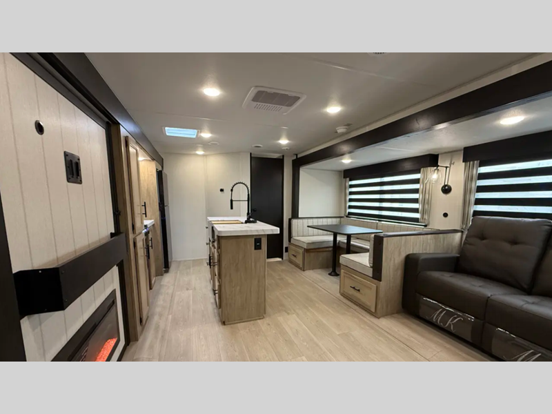 Sleeps 3 Slides 2 Length 36 ft 3 in Ext Width 8 ft Ext Height 11 ft 3 in Hitch Weight 956 lbs GVWR 9995 lbs Dry Weight 7569 lbs Cargo Capacity 2426 lbs Fresh Water Capacity 52 gals Grey Water Capacity 38 gals Black Water Capacity 38 gals Available Beds RV King Cooktop Burners 3 Number of Awnings 1 Awning Info 15' Axle Count 2 Shower Type Standard Similar Floorplans