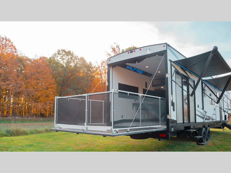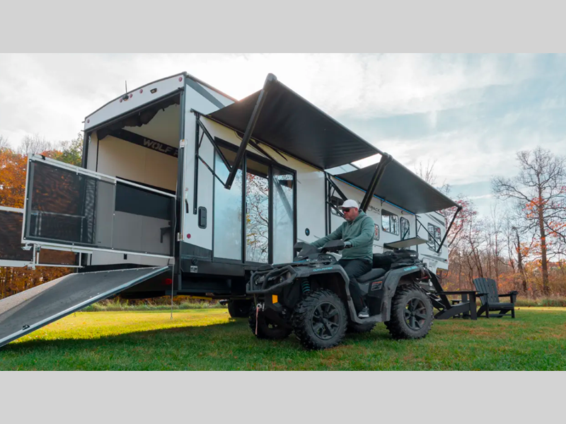The Cherokee Wolf Pack toy haulers by Forest River are your ticket to fun and adventure. These fifth wheels and travel trailers feature an 8' 6" wide-body design so you can easily bring along the side-by-side, bikes, kayaks, and more!