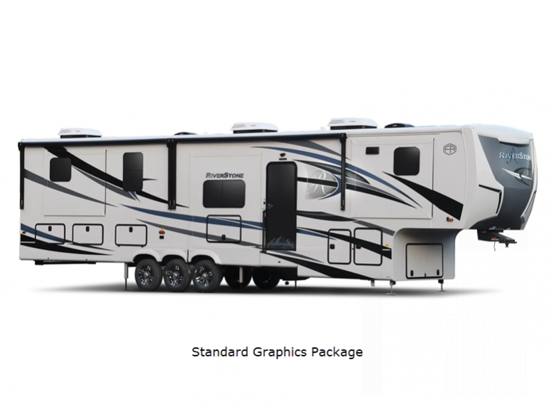 The Forest River RiverStone fifth wheels and toy haulers are super luxurious and convenient for all your camping or full-time needs! These elegant units have standard features that will enhance every aspect of your trip, like a cordless vacuum, 18-cubic foot French door refrigerator with an ice maker, an under-bed storage compartment, and hydraulic slide outs.