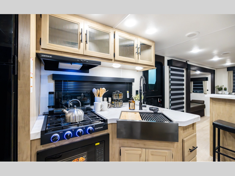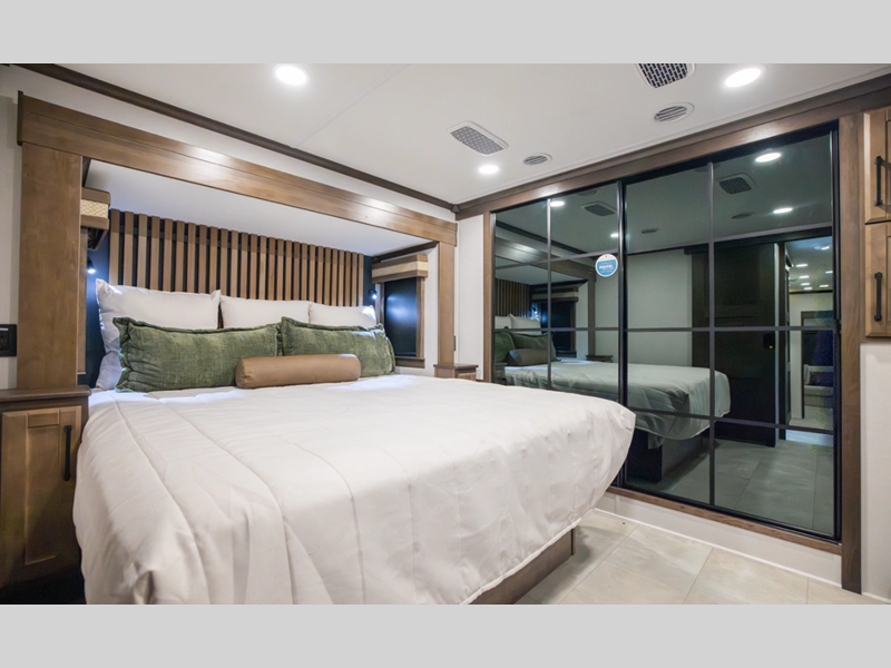 You will truly appreciate the stackable washer/dryer because it will allow you to travel without restraint, and the Truma Aqua Go Comfort on-demand hot water heater will give you hot water whenever you need it. You'll stay entertained with a Samsung LED Smart TV in the living room and a 40" LED TV in the bedroom, and the 200W solar panel will provide some off-grid capabilities.