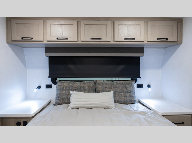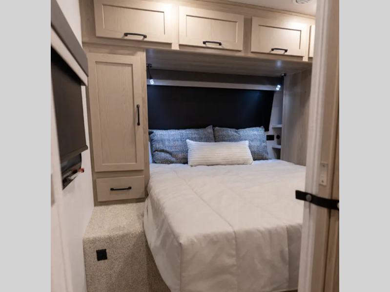 Sleeps 2 Slides 2 Length 25 ft 10 in Ext Width 8 ft Ext Height 10 ft 11 in Hitch Weight 710 lbs Dry Weight 6313 lbs Cargo Capacity 1397 lbs Fresh Water Capacity 54 gals Grey Water Capacity 58 gals Black Water Capacity 29 gals Furnace BTU 35000 btu Available Beds RV Queen Refrigerator Type 12 Volt Cooktop Burners 3 Number of Awnings 1 LP Tank Capacity 30 lbs Water Heater Type Quick Recovery AC BTU 15000 btu TV Info LR 12V Smart TV Awning Info 15' Power with Adjustable Rain Dump and LED Lights Axle Count 2 Number of LP Tanks 2 Shower Type Standard Similar Floorplans