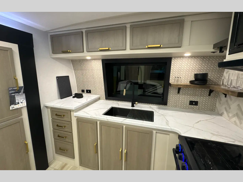 Each model includes an Elevated Value Package and Expedition Package that includes many hassle-free camping amenities, like the 60K on-demand tankless water heater, nitrogen-filled radial tires, and a JBL sound system to name a few. You will appreciate the durable laminated sidewalls and floor, and there are many stand-out exterior features. Once inside, you'll enjoy at-home comforts that will make you feel right at home!