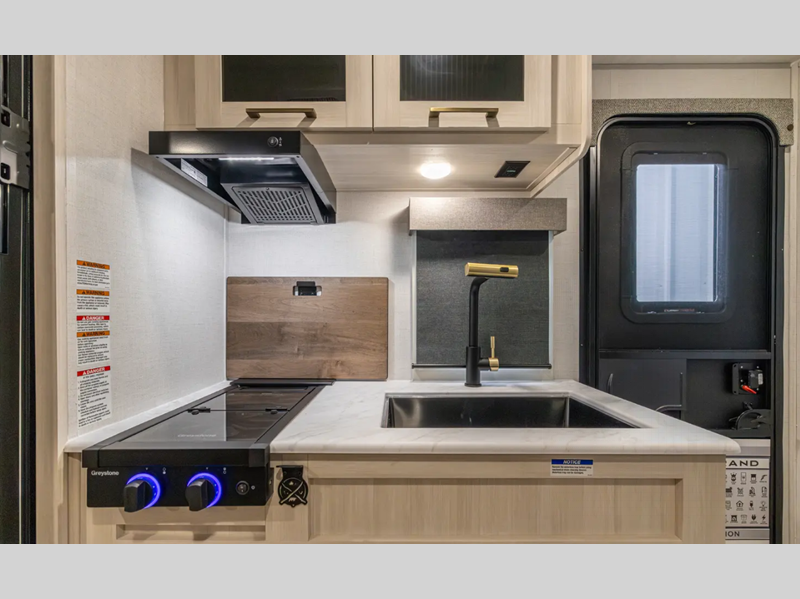 Sleeps 4 Slides 1 Length 24 ft 4 in Ext Width 7 ft 4 in Ext Height 10 ft 9 in Hitch Weight 425 lbs GVWR 5625 lbs Dry Weight 4128 lbs Cargo Capacity 1497 lbs Fresh Water Capacity 30 gals Grey Water Capacity 30 gals Black Water Capacity 30 gals Available Beds Queen Refrigerator Type 12V Black Glass Refrigerator Size 10 cu ft Convection Cooking Yes Cooktop Burners 2 Number of Awnings 1 Water Heater Type Tankless AC BTU 15000 btu TV Info LR HD TV Awning Info 16' Electric w/LED Light Strip Axle Count 1 Shower Type Standard Electrical Service 30 amp Solar Wattage 200 watts Similar Floorplans