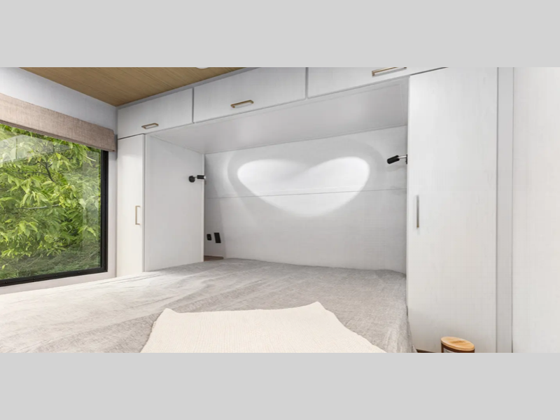 Sleeps 2 Slides 2 Length 29 ft 11 in Ext Width 8 ft Ext Height 11 ft 4 in Hitch Weight 805 lbs Dry Weight 6663 lbs Cargo Capacity 2942 lbs Fresh Water Capacity 38 gals Grey Water Capacity 96 gals Black Water Capacity 30 gals Available Beds Custom King Refrigerator Type 12V Refrigerator Size 10.7 cu ft Cooktop Burners 3 Shower Size 36" x 30" Number of Awnings 2 Water Heater Type On Demand Tankless AC BTU 31500 btu Awning Info 9'6" and 9'6" w/LED Lights Axle Count 2 Washer/Dryer Available Yes Shower Type Walk-In Shower Similar Floorplans