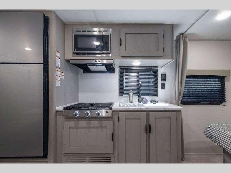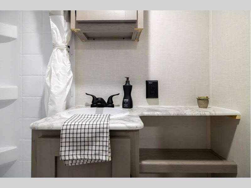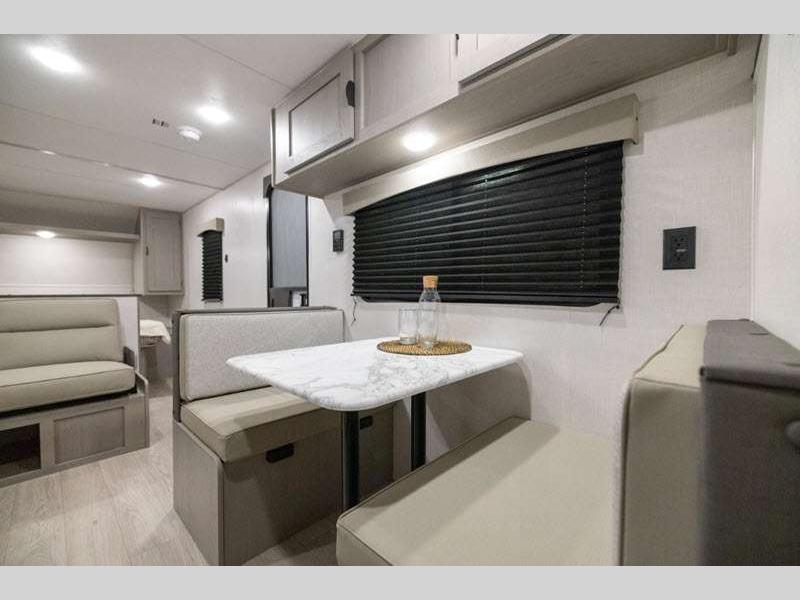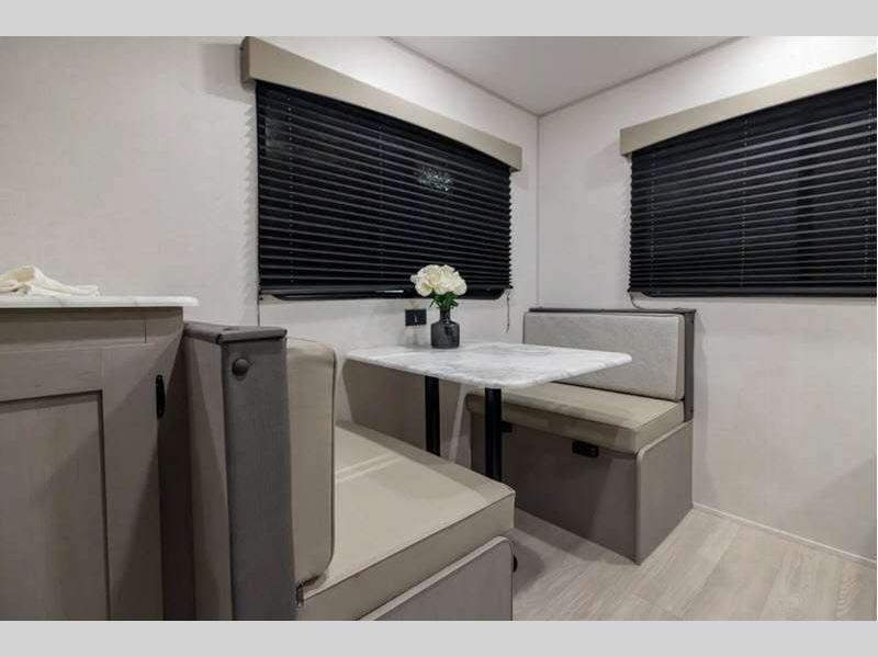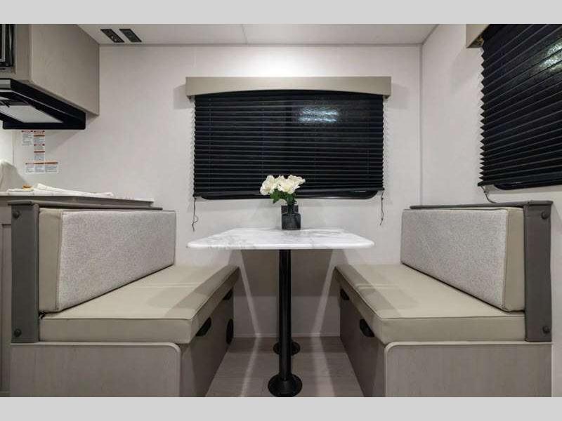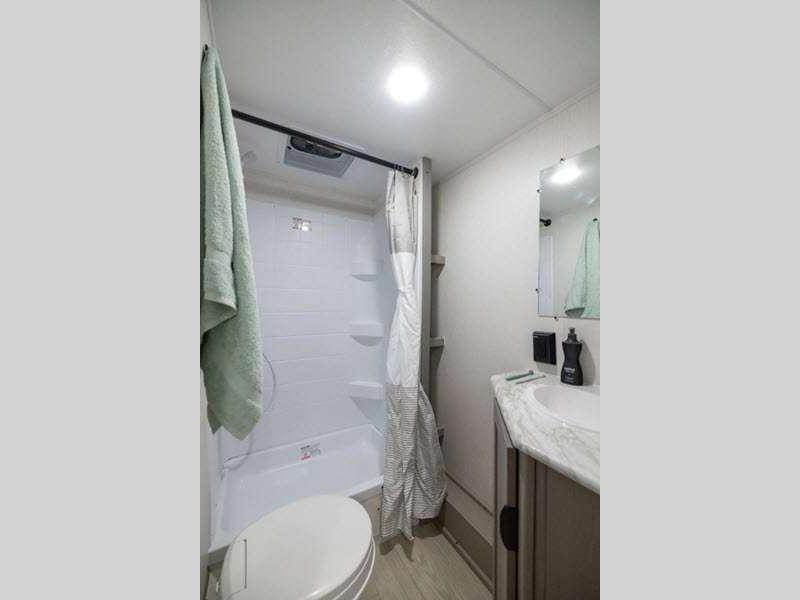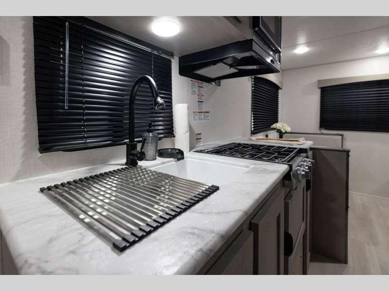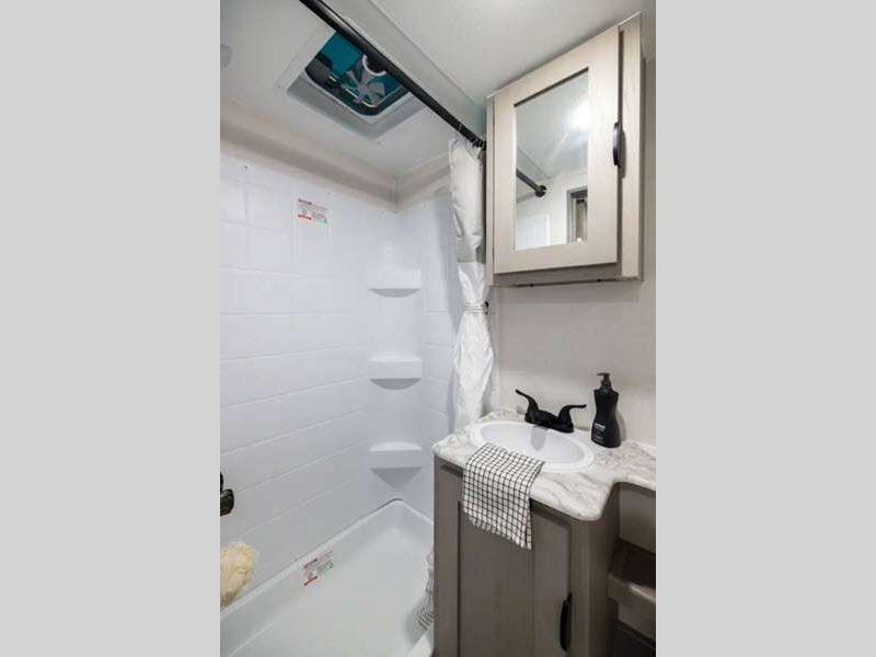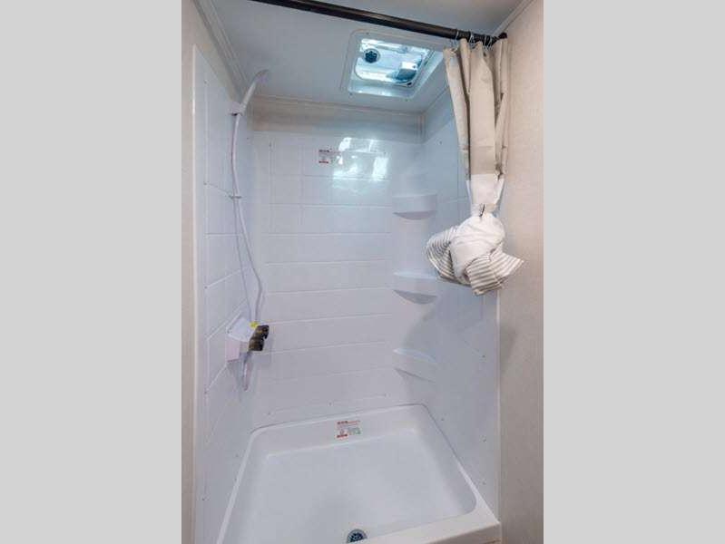 Each model is constructed with a BAL NXG frame for durability, and a smooth metal front for better fuel efficiency while towing. There are magnetic baggage door latches outside, along with a power awning with an LED light strip and adjustable legs, an outside shower with hot and cold water, and many more conveniences!