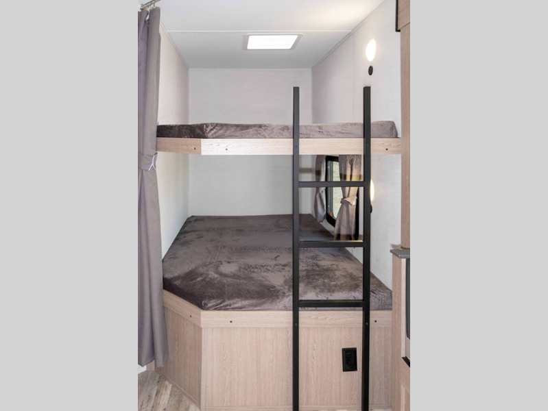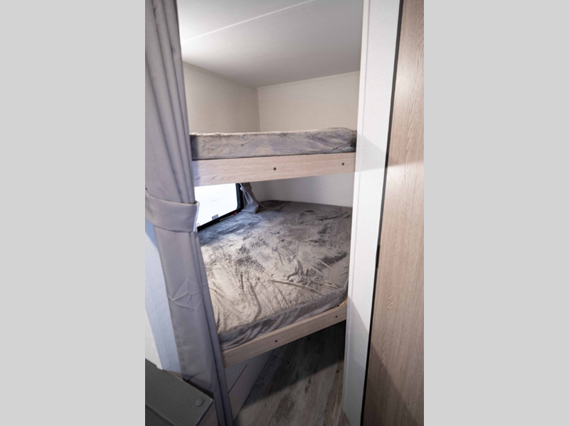 Sleeps 8 Slides 1 Length 32 ft 6 in Ext Width 8 ft Ext Height 11 ft 1 in Int Height 6 ft 8 in Hitch Weight 810 lbs Dry Weight 6210 lbs Cargo Capacity 1600 lbs Fresh Water Capacity 23 gals Grey Water Capacity 33 gals Black Water Capacity 33 gals Tire Size 14" Furnace BTU 20000 btu Number Of Bunks 4 Available Beds Queen Refrigerator Type Everchill Refrigerator Size 10.7 cu ft Number of Awnings 1 LP Tank Capacity 20 lbs Water Heater Type Tankless AC BTU 13500 btu Awning Info Electric with LED Lights Axle Count 2 Number of LP Tanks 2 Shower Type Tub/Shower Combo Electrical Service 30 amp Similar Floorplans