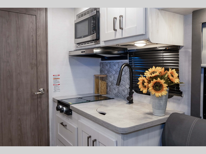 Sleeps 5 Length 24 ft Ext Width 8 ft 4 in Ext Height 11 ft 3 in Int Height 7 ft 1 in Interior Color Smoke, Fog Hitch Weight 7500 lbs GVWR 12500 lbs Cargo Capacity 4251 lbs Fresh Water Capacity 37 gals Grey Water Capacity 31 gals Black Water Capacity 31 gals Furnace BTU 25000 btu Generator 4.0 kW Enclosed Fuel Type Gasoline Engine 7.3L Premium V8 Chassis Ford E350 Fuel Capacity 55 gals Number Of Bunks 1 Available Beds RV Queen Refrigerator Type 12V Double Door Refrigerator Size 10.2 cu ft Cooktop Burners 3 Number of Awnings 1 LP Tank Capacity 42 lbs Water Heater Type Tankless AC BTU 13500 btu Awning Info Electric with LED Lights Shower Type Standard Similar Floorplans