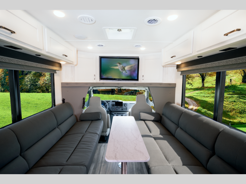 Sleeps 7 Slides 2 Length 31 ft 4 in Ext Width 8 ft 4 in Ext Height 11 ft 3 in Int Height 7 ft 1 in GVWR 14500 lbs Fresh Water Capacity 35 gals Grey Water Capacity 32 gals Black Water Capacity 32 gals Furnace BTU 35000 btu Generator 4.0 kW Onan Fuel Type Gasoline Engine 7.3L Premium V8 Chassis Ford E450 Horsepower 350 hp Fuel Capacity 55 gals Number Of Bunks 1 Available Beds RV Queen Torque 425 ft-lb Refrigerator Type Double Door Refrigerator Size 10.2 cu ft Cooktop Burners 3 Number of Awnings 1 LP Tank Capacity 42 lbs Water Heater Capacity 6 gal Water Heater Type Gas/Electric AC BTU 13500 btu Awning Info Electric w/LED Lights Shower Type Standard Electrical Service 30 amp Similar Floorplans