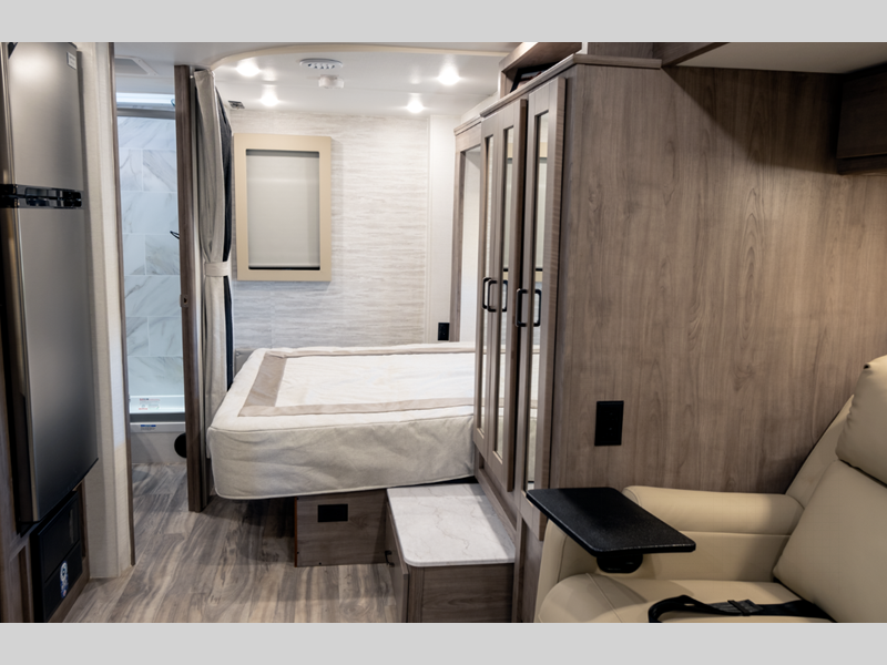 Sleeps 6 Slides 2 Length 31 ft 4 in Ext Width 8 ft 4 in Ext Height 11 ft 3 in Int Height 7 ft 1 in Interior Color Smoke, Fog Hitch Weight 7500 lbs GVWR 14500 lbs Cargo Capacity 2381 lbs Fresh Water Capacity 35 gals Grey Water Capacity 32 gals Black Water Capacity 32 gals Furnace BTU 35000 btu Generator 4.0 kW Enclosed Fuel Type Gasoline Engine 7.3L Premium V8 Chassis Ford E450 Fuel Capacity 55 gals Number Of Bunks 1 Available Beds RV Queen Refrigerator Type 12V Double Door Refrigerator Size 10.2 cu ft Cooktop Burners 3 Number of Awnings 1 LP Tank Capacity 42 lbs Water Heater Type Tankless AC BTU 13500 btu Awning Info Electric w/LED Lights Shower Type Standard Electrical Service 30 amp Similar Floorplans