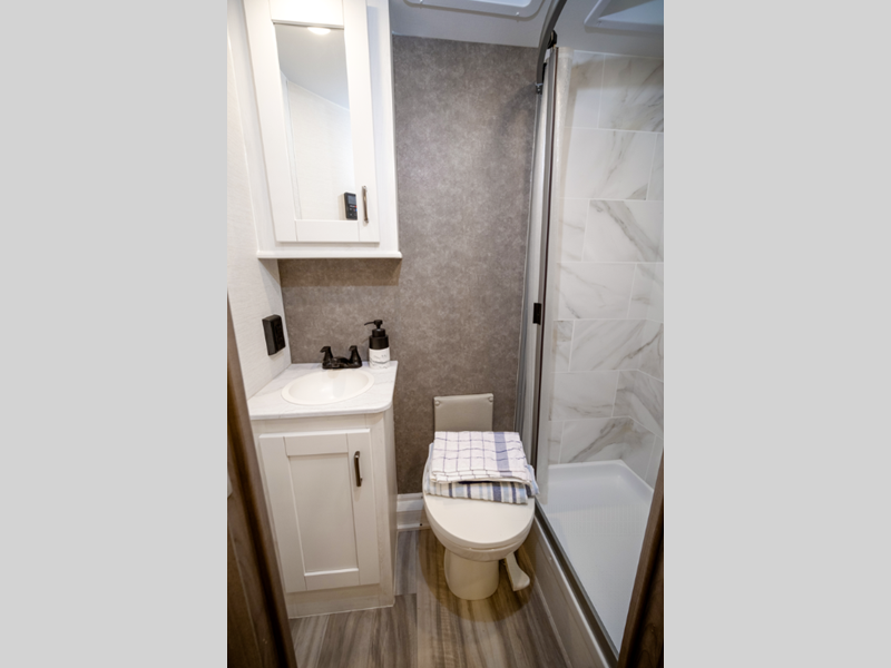 Sleeps 3 Slides 1 Length 24 ft 10 in Ext Width 8 ft Ext Height 10 ft 6 in Int Height 6 ft 5 in Hitch Weight 7500 lbs GVWR 12500 lbs Dry Weight 9963 lbs Cargo Capacity 2537 lbs Fresh Water Capacity 37 gals Grey Water Capacity 38 gals Black Water Capacity 38 gals Furnace BTU 25000 btu Generator 4.0 kW Enclosed Fuel Type Gasoline Engine 7.3L V8 Available Beds RV Queen Refrigerator Type 12V Double Door Refrigerator Size 10 cu ft Cooktop Burners 3 Number of Awnings 1 LP Tank Capacity 42 lbs Water Heater Type Tankless AC BTU 13500 btu Awning Info Electric w/LED Lights Shower Type Tub/Shower Combo -