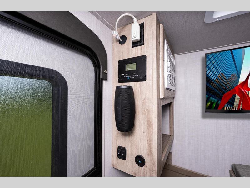 The 100W roof-mount solar panel with controller lets you go off the grid for a boondocking camping experience. You can navigate through rougher terrains with the all-terrain radial tires, and the front and side diamond plate rock guard will protect the exterior. Stay connected with the multiple 110V and USB power outlets and listen to your favorite tunes everywhere you go with the Bluetooth portable speaker and docking station.