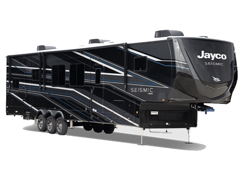 Enjoy the camping experience in luxury with the Seismic toy haulers by Jayco! These fifth wheels and travel trailers feature a 5-Star Handling Package for smooth towing, along with a 30-gallon fuel tank to keep your toys ready to go, plus a Tuff-Ply, rubberized garage floor to withstand your many adventures!