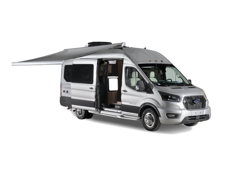 Sleeps 2 Length 22 ft Ext Width 7 ft 2 in Ext Height 10 ft Int Height 6 ft 6 in Interior Color Crown Point GVWR 11000 lbs Fresh Water Capacity 28 gals Grey Water Capacity 26 gals Black Water Capacity 16 gals Tire Size 205/75R16C BSW All Season Furnace BTU 20000 btu Generator 2800W Gas Fuel Type Gasoline Engine 3.5L EcoBoost V6 Chassis Ford Transit AWD 350HD Horsepower 310 hp Fuel Capacity 25 gals Wheelbase 148 in Available Beds Twin Beds with Bed Conversion Torque 400 ft-lb Refrigerator Size 3.1 cu ft Cooktop Burners 1 Shower Size 25" x 47" Water Heater Type Truma Combi Eco Plus AC BTU 13500 btu TV Info LR 24" LED HD Smart TV Awning Info Carefree Armless with LED Lights Gross Combined Weight 13000 lbs Shower Type Wet/Bath Shower Electrical Service 30 amp Solar Wattage 200 watts Similar Floorplans