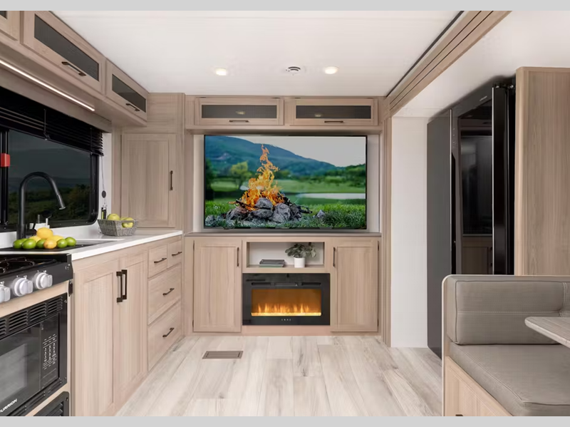 Sleeps 4 Slides 1 Length 33 ft 11 in Ext Height 11 ft 2 in Hitch Weight 992 lbs Dry Weight 7046 lbs Cargo Capacity 1954 lbs Fresh Water Capacity 54 gals Grey Water Capacity 68 gals Black Water Capacity 34 gals Tire Size ST225/75R15E Furnace BTU 35000 btu Available Beds King Refrigerator Type 12V Refrigerator Size 16 cu ft Convection Cooking Yes Cooktop Burners 3 Shower Size 30" x 40" Number of Awnings 1 LP Tank Capacity 20 lbs Water Heater Type Tankless AC BTU 15000 btu TV Info LR 65" LED Smart TV Awning Info 18' Power Number of LP Tanks 2 Shower Type Standard Similar Floorplans