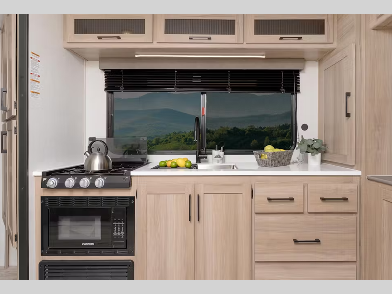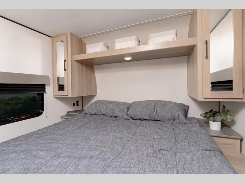 Sleeps 3 Slides 1 Length 29 ft 11 in Ext Height 11 ft 2 in Hitch Weight 786 lbs Dry Weight 6412 lbs Cargo Capacity 2088 lbs Fresh Water Capacity 54 gals Grey Water Capacity 68 gals Black Water Capacity 34 gals Tire Size ST215/75R14D Furnace BTU 35000 btu Available Beds King Refrigerator Type 12V Refrigerator Size 16 cu ft Convection Cooking Yes Cooktop Burners 3 Shower Size 30" x 40" Number of Awnings 1 LP Tank Capacity 20 lbs Water Heater Type Tankless AC BTU 15000 btu TV Info LR 50" LED Smart TV Awning Info 16' Power Number of LP Tanks 2 Shower Type Standard Similar Floorplans