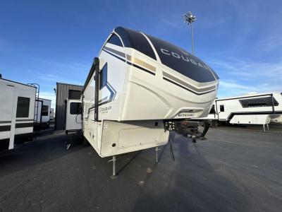 The Keystone Cougar Half-Ton fifth wheel and travel trailers are known as one of America's favorites for a reason! Some of those reasons are the exclusive features that come from Keystone, like the Winegard Air 360+ omni-directional rooftop antenna, the in-floor heating ducts, and the HyperCore composite wall construction with Vixen Fibrogloss high-gloss finish. The Cougar Half-Ton has a Climate Guard protection package with heat-deflecting white sidewalls, two roof attic vents, PEX plumbing and more to enjoy four season camping. Inside, you'll love the dimmable lighting, night roller shades throughout, shower skylight, and bedside USB outlets to keep your electronics charged.