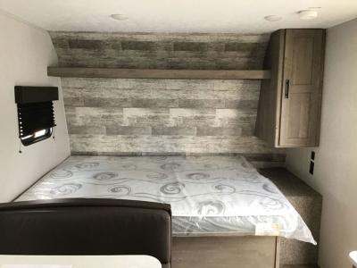 Get ready for outdoor fun with your favorite people when you have this trailer in tow! Once at your campsite, you can easily setup the 10' power awning, grab your camping chairs from the pass-thru storage, and relax or start playing. The cook will love the galley kitchen with the two burner cooktop, plus a refrigerator for cold items. If you like, you can eat inside at the booth dinette which doubles as sleeping space, and of course the kids will love the bunk beds next to the full bathroom. And you will sleep soundly on the front queen bed