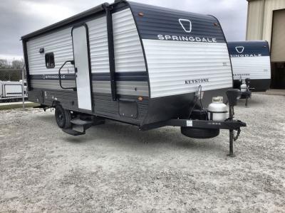 With any Springdale Mini travel trailer by Keystone, you will enjoy lightweight towing thanks to their single axle! The XL tinted safety glass windows are ultra durable, and the power awning will provide protection from the sun as you relax in your camp chairs outside. Each model includes blackout night shades, LED lighting, plus many more interior comforts. There is also a 20K BTU furnace to keep you comfortable, plus a tankless water heater for endless hot showers!