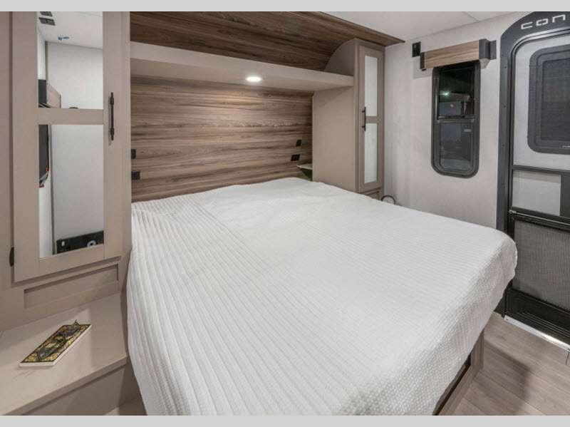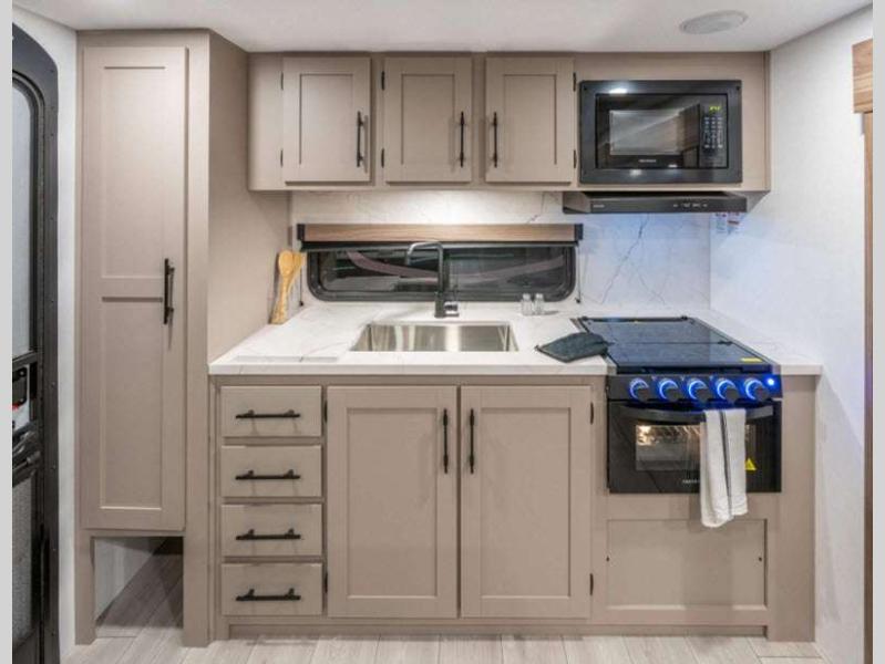 Sleeps 2 Slides 1 Length 27 ft Ext Width 8 ft Ext Height 10 ft 10 in Int Height 6 ft 6 in Interior Color Chocolate, Mink Hitch Weight 620 lbs GVWR 7000 lbs Dry Weight 5440 lbs Cargo Capacity 1560 lbs Fresh Water Capacity 45 gals Grey Water Capacity 64 gals Black Water Capacity 32 gals Tire Size 15" Furnace BTU 30000 btu Available Beds Queen Refrigerator Type 12V Refrigerator Size 10 cu ft Cooktop Burners 3 Shower Size 30" x 36" Number of Awnings 1 Axle Weight 4820 lbs LP Tank Capacity 20 lbs Water Heater Type Tankless AC BTU 13500 btu Awning Info 16' Power w/LED Light Strip Axle Count 2 Number of LP Tanks 2 Shower Type Standard Electrical Service 30 amp Similar Floorplans