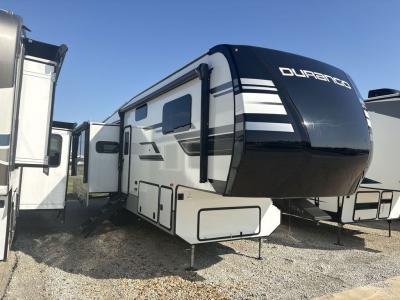 Enjoy full time living, an affordable price, and a wide body construction for more living space with every one of these KZ Durango light high-profile fifth wheels! These luxury units can be used all year round with the all-weather insulation package, the 3" x 14" foam-core in-floor straight-line heating system with a 35,000 BTU furnace, and the 15,000 BTU ducted roof A/C which optimizes the airflow by an average of 40% for better performance, cooling time, and reduction of noise. A few other construction features you will appreciate include a one piece, seamless walk-on Tufflex roofing material, Pex® in-floor heated waterlines, and a Lamilux® gelcoat fiberglass exterior. Inside, blancher  maple & morel fog cabinetry , a king size bed, and smart TVs will have you feeling like you never left home!