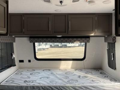 Bunk beds make this travel trailer the perfect family-friendly unit, so head to your local state park! The front 54" x 80" bed will provide comfortable sleeping space for you, plus there is a booth dinette for one or two little ones to sleep on. This model includes a two burner cooktop, a microwave oven, plus a single bowl sink for hassle-free clean up. The 13' power awning will protect you from the elements, and the pass-through storage will be perfect for fishing poles.