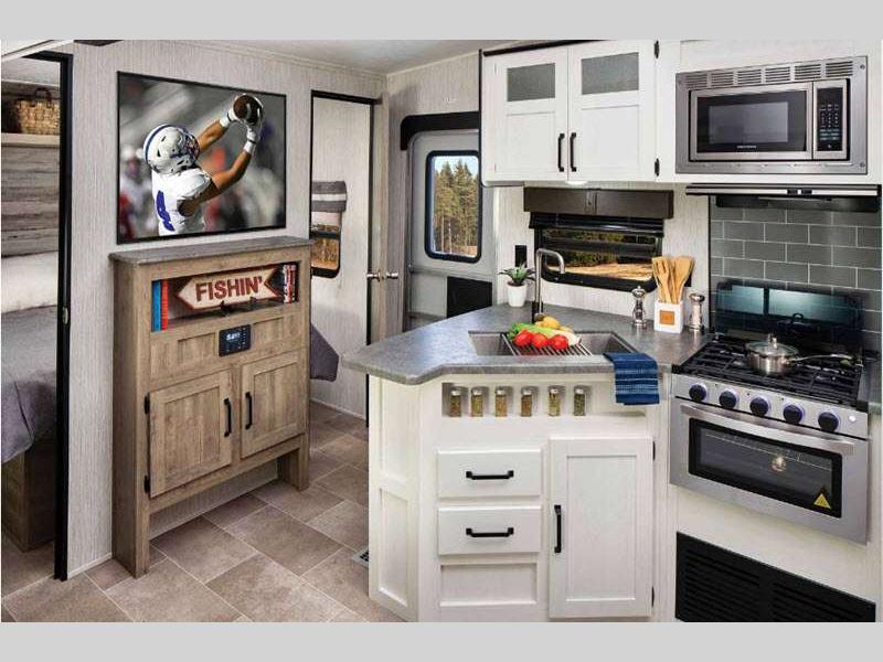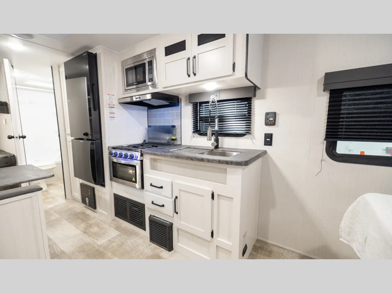 Sleeps 4 Length 23 ft 10 in Ext Width 8 ft Ext Height 10 ft 5 in Hitch Weight 415 lbs GVWR 5515 lbs Dry Weight 4018 lbs Cargo Capacity 1497 lbs Fresh Water Capacity 43 gals Grey Water Capacity 35 gals Black Water Capacity 35 gals Available Beds RV Queen Refrigerator Type 12V Refrigerator Size 11 cu ft Shower Size 24" x 38" Number of Awnings 1 Water Heater Capacity 6 gal Water Heater Type Gas/Electric DSI AC BTU 13500 btu Awning Info 14' Electric with LED Light Strip Axle Count 1 Shower Type Tub/Shower Combo
